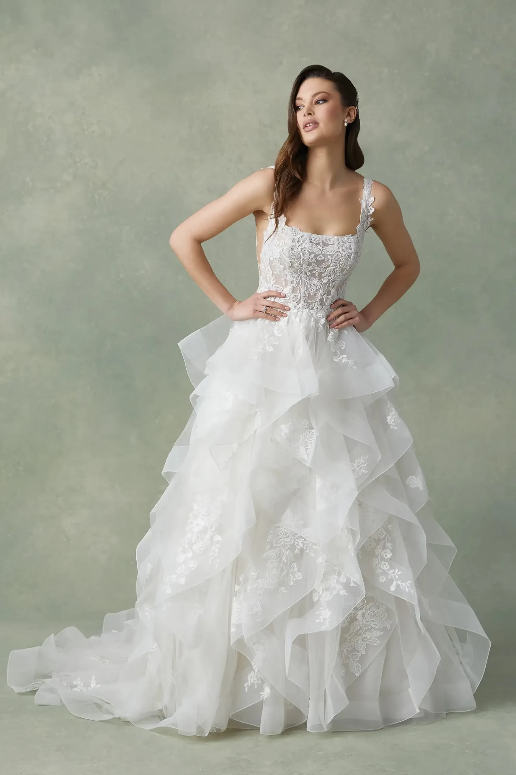 For the bride seeking a touch of vintage charm with a modern twist, the Justin Alexander Florencia dress is a dream come true. This dress is reminiscent of a classic tulle style, perfect for a summer garden or beach wedding. The delicate straps are breathtaking, and the layers of tulle on the skirt will have you floating down the aisle!